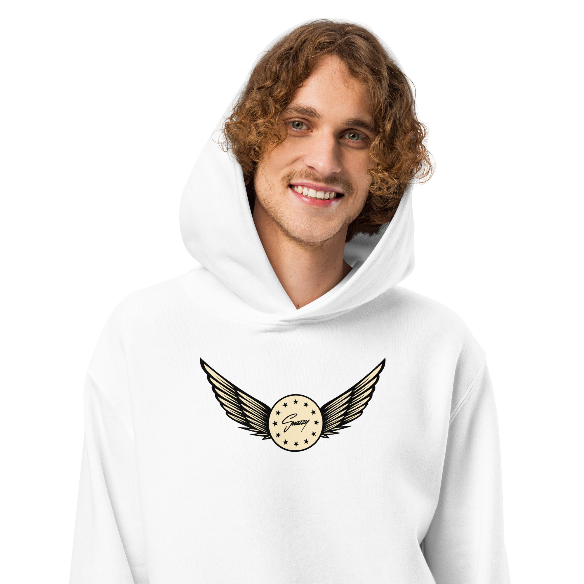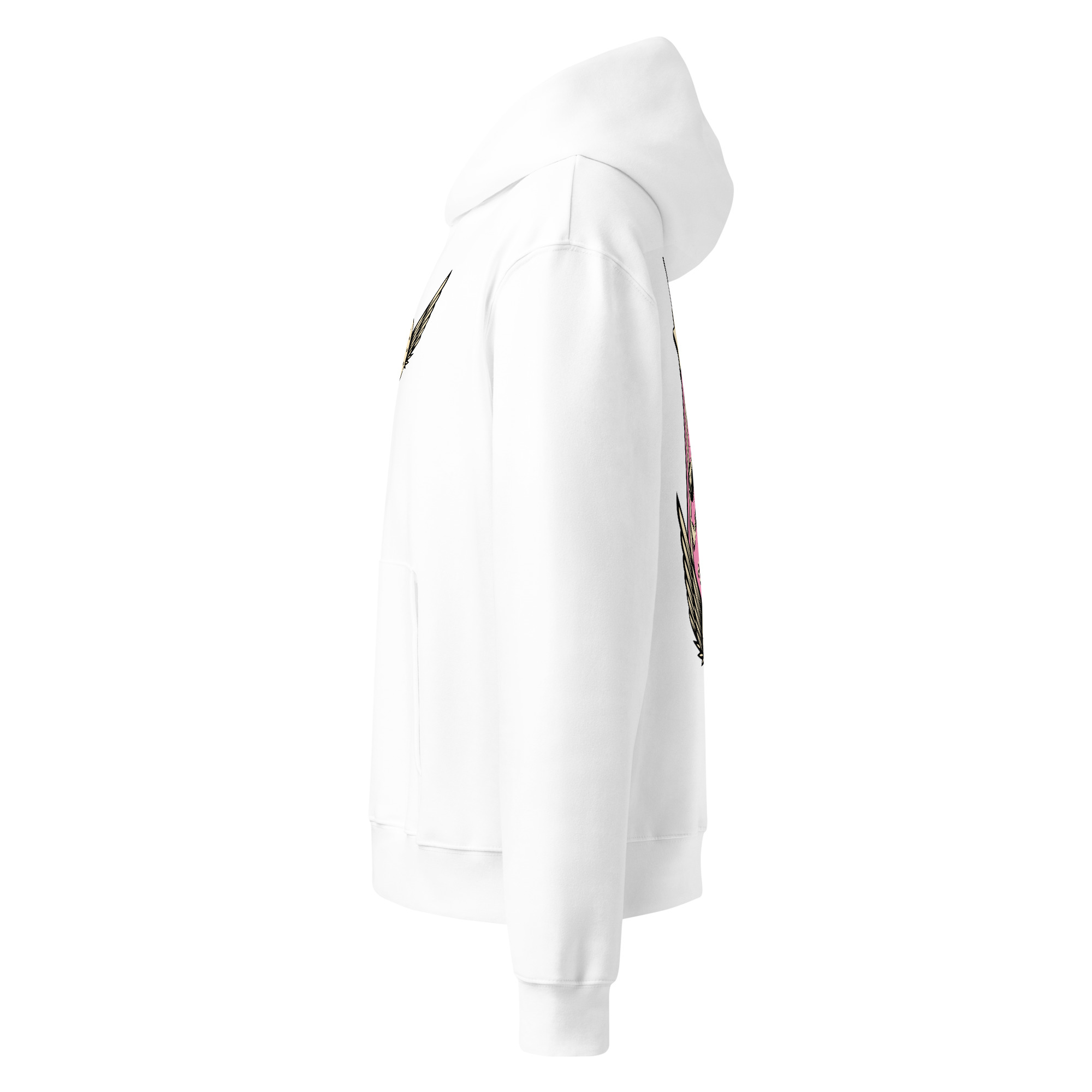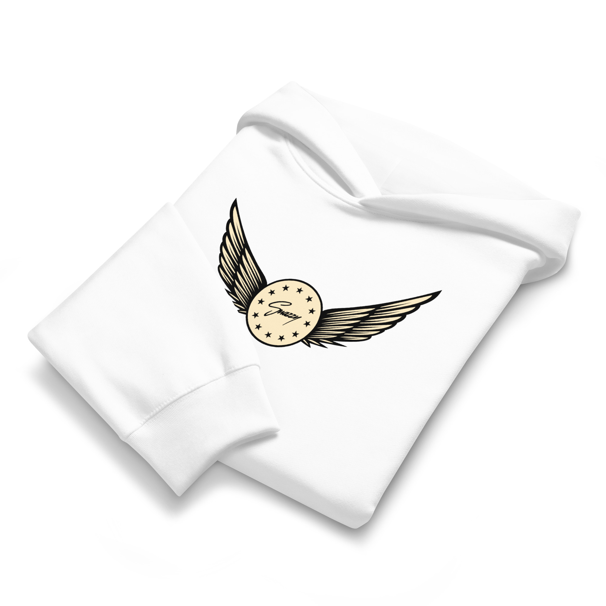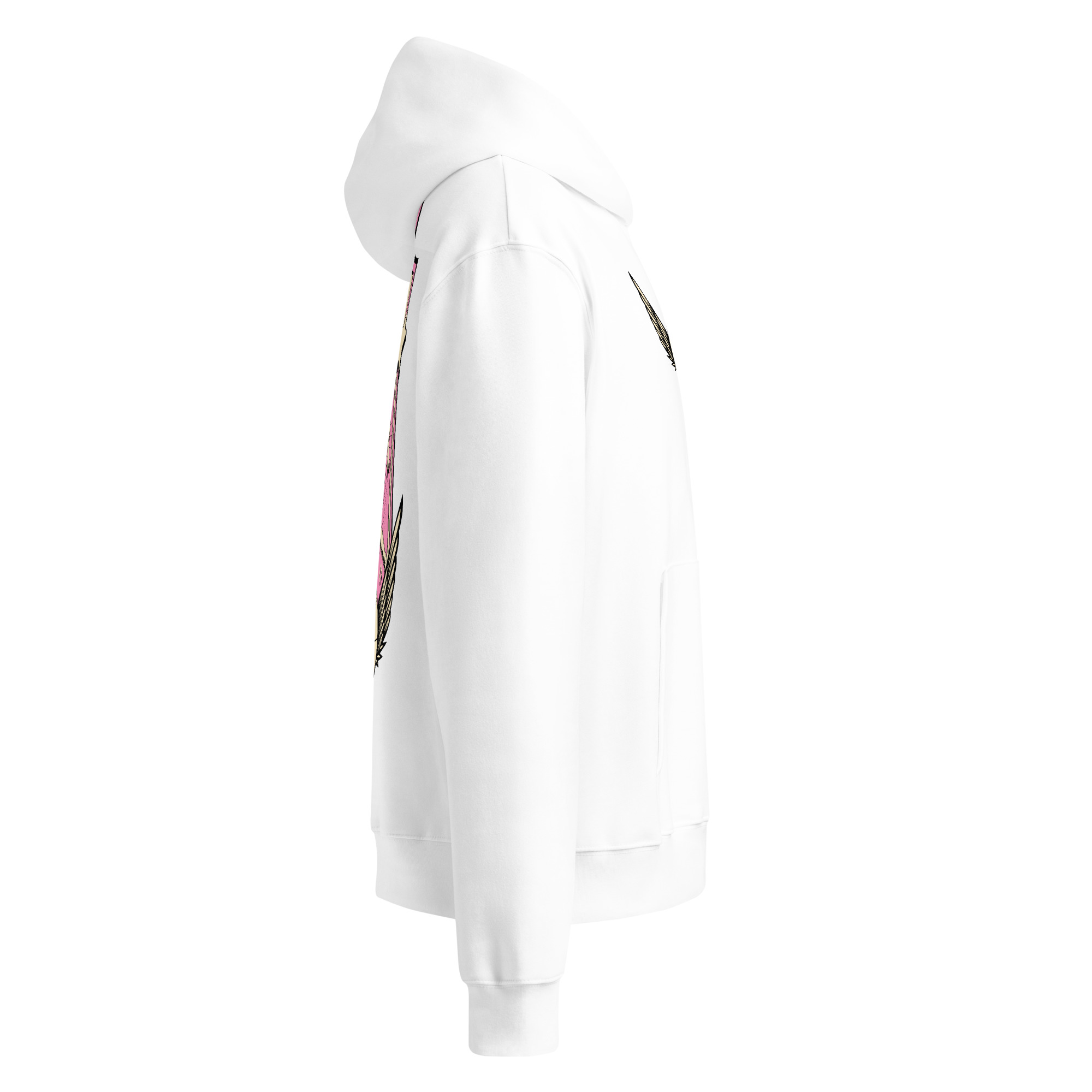 • Farbe: Weißer Hoodie mit großem Print hinten und kleinem Print vorne