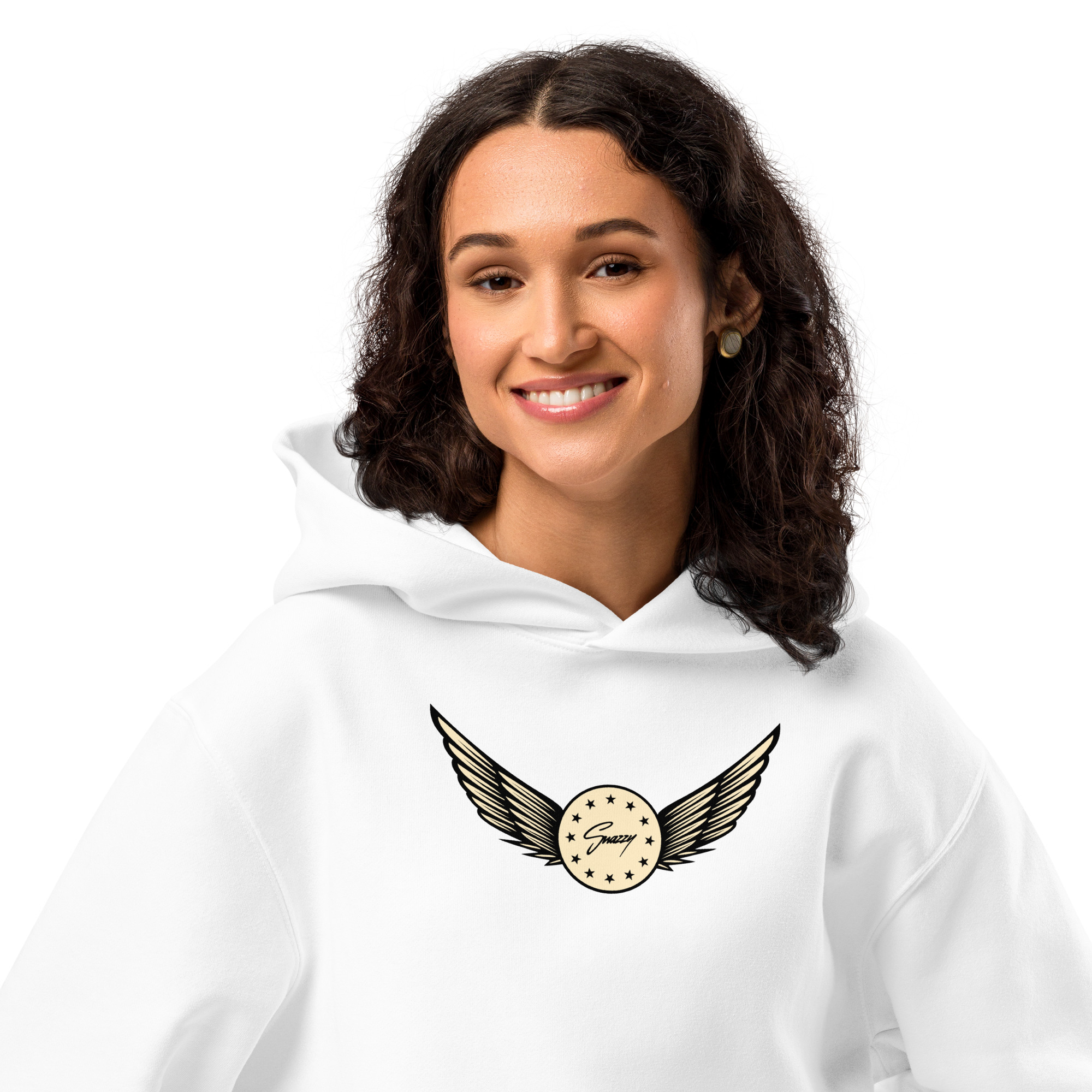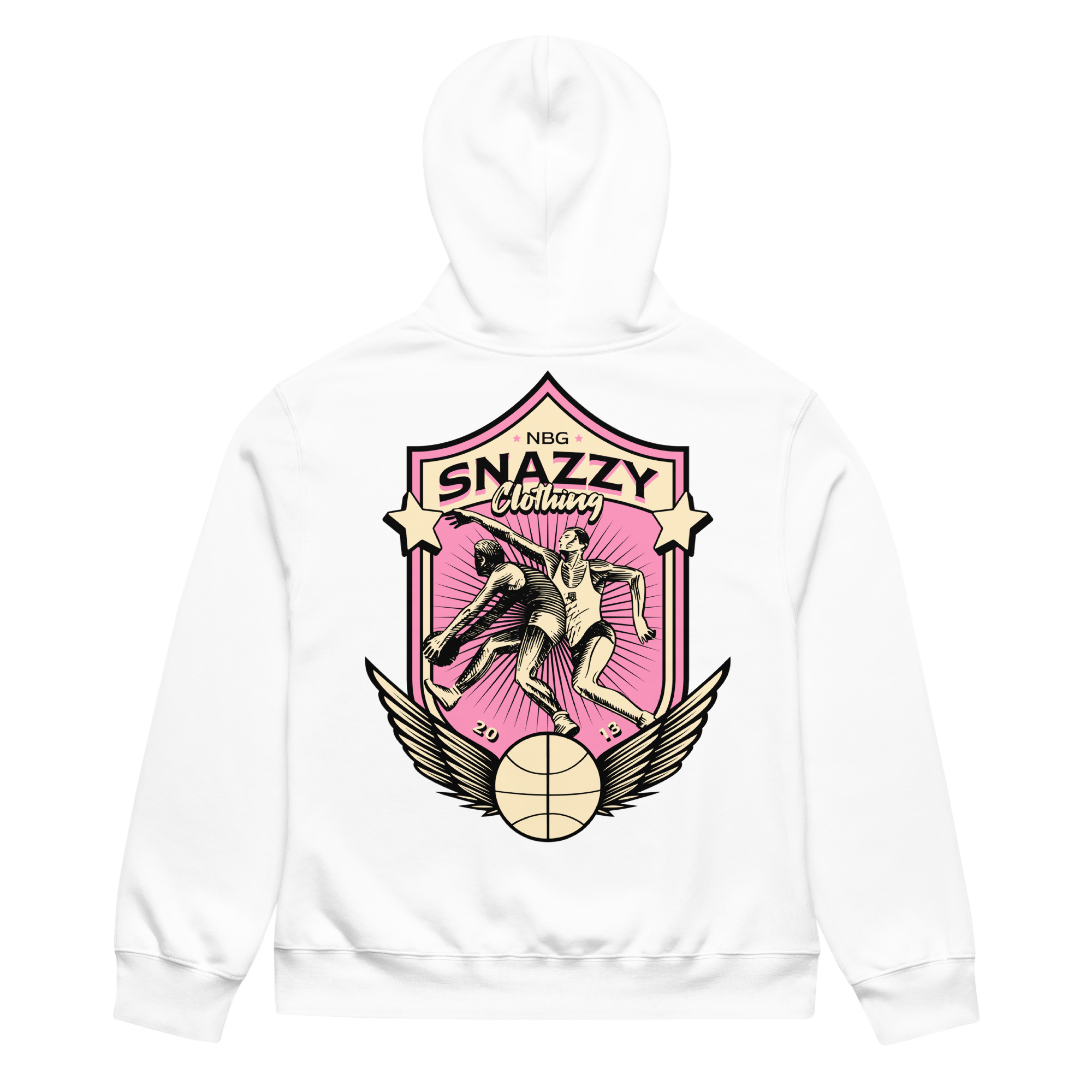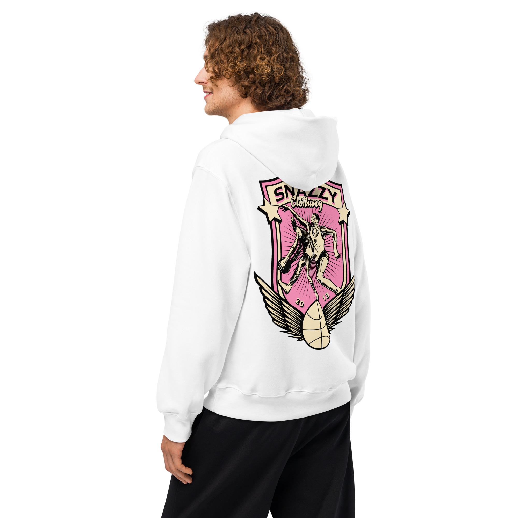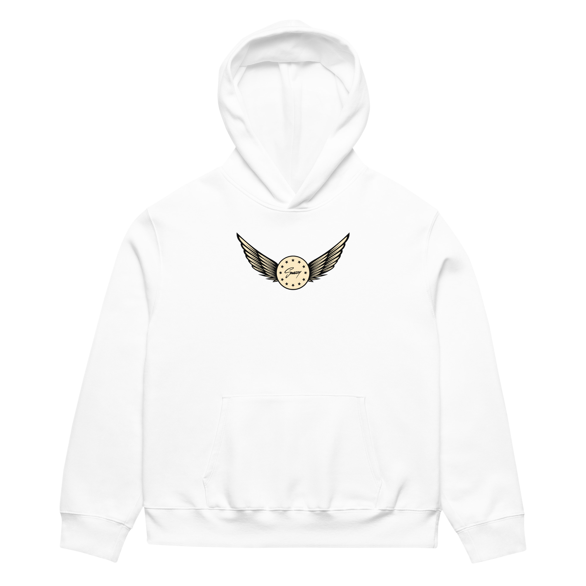 • Farbe: Weißer Hoodie mit großem Print hinten und kleinem Print vorne