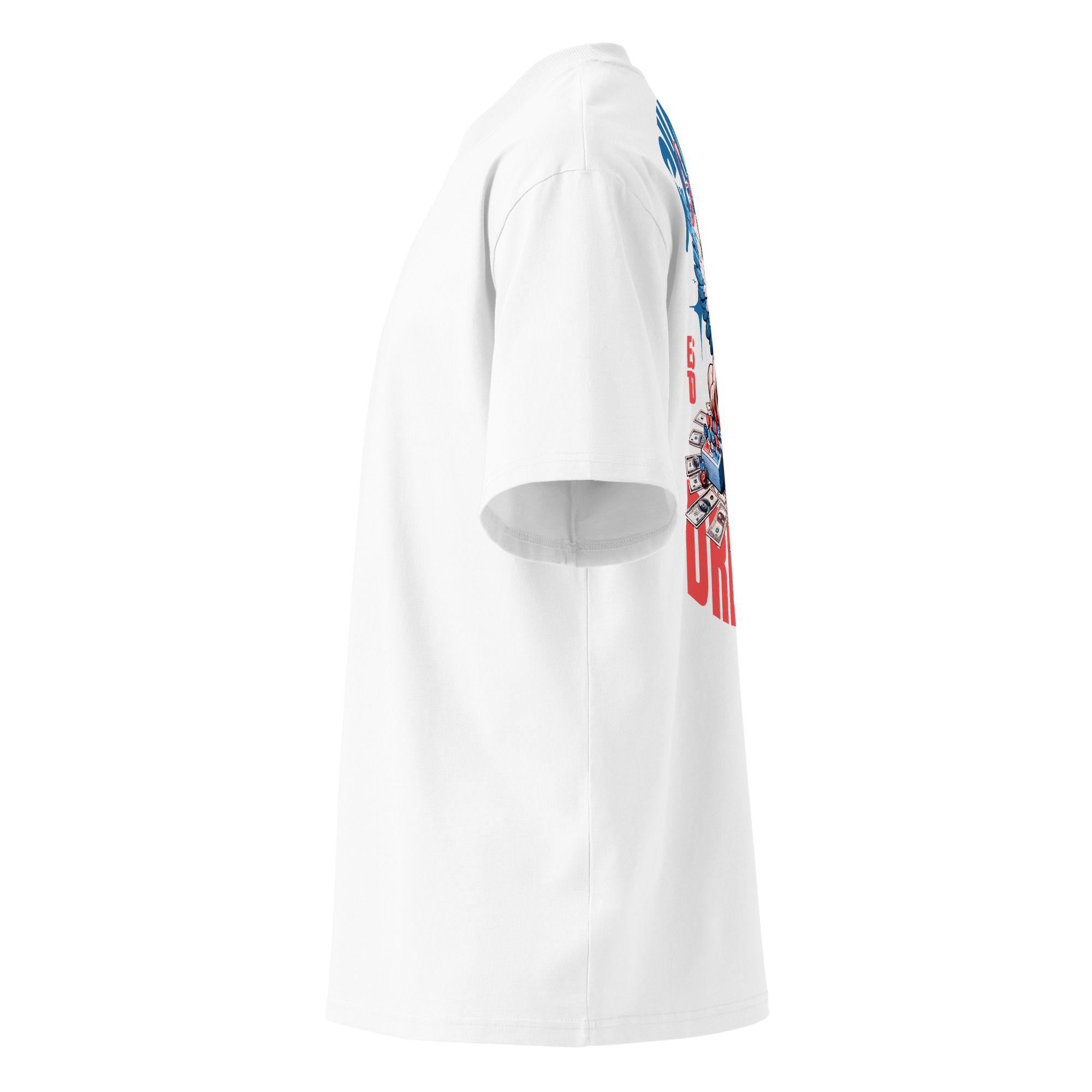 • Farbe: Weißes T-Shirt mit großem Print hinten und kleinem Print auf dem Ärmel