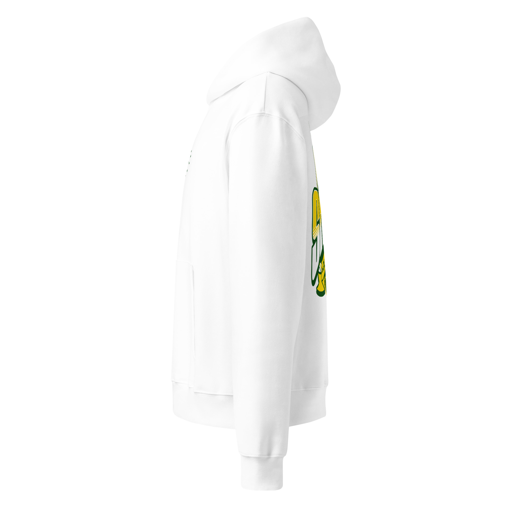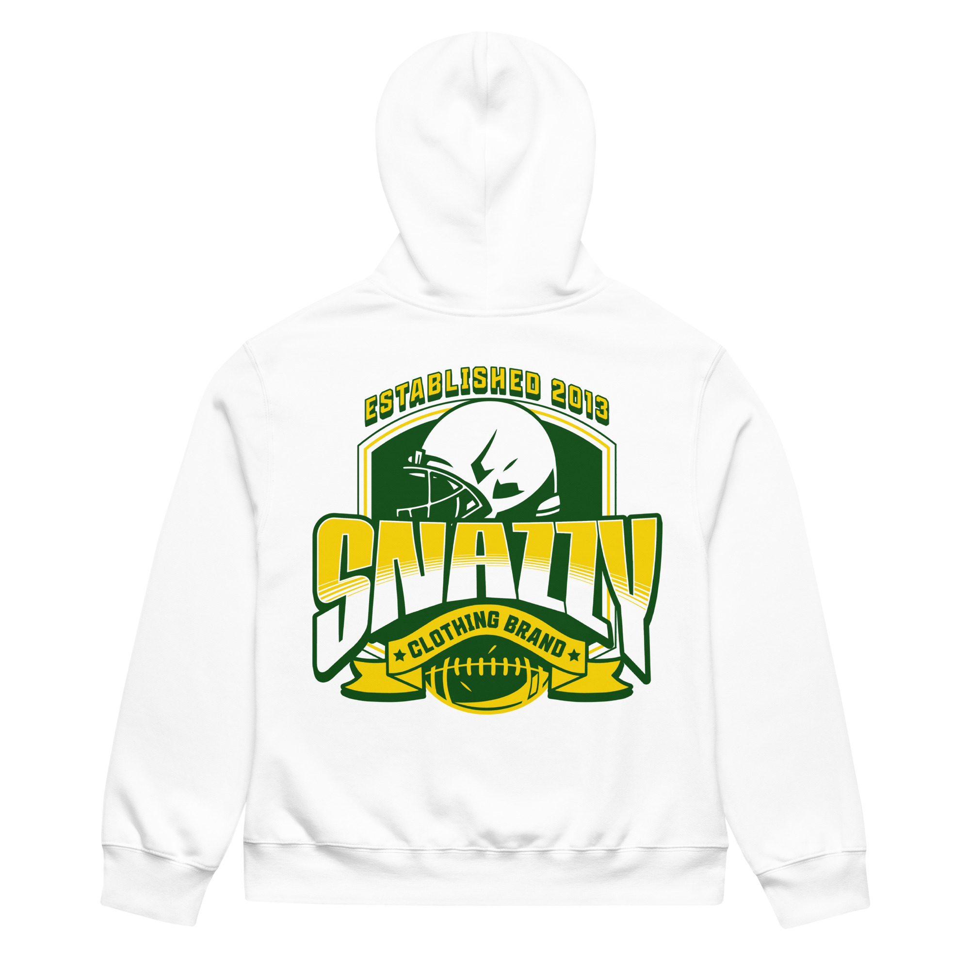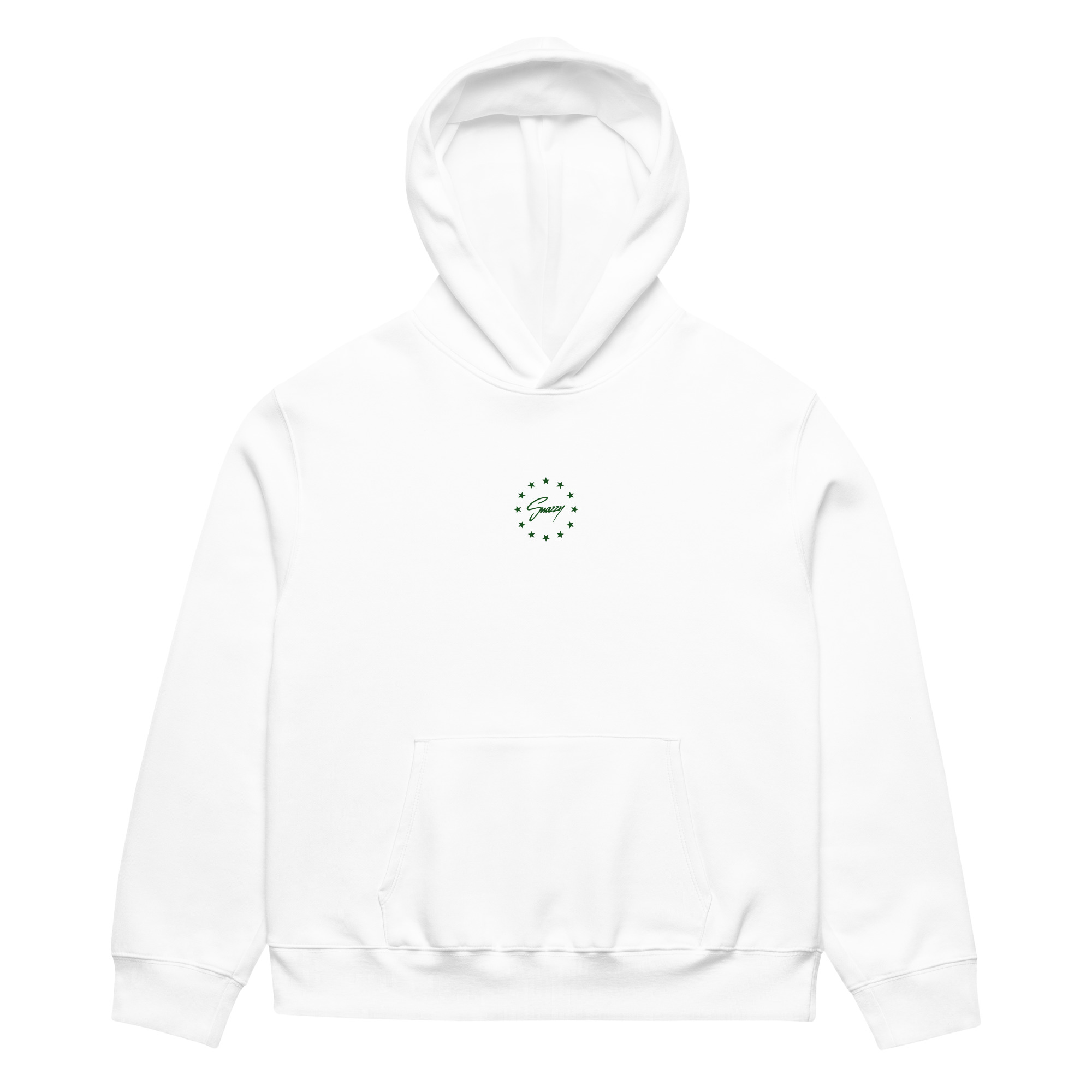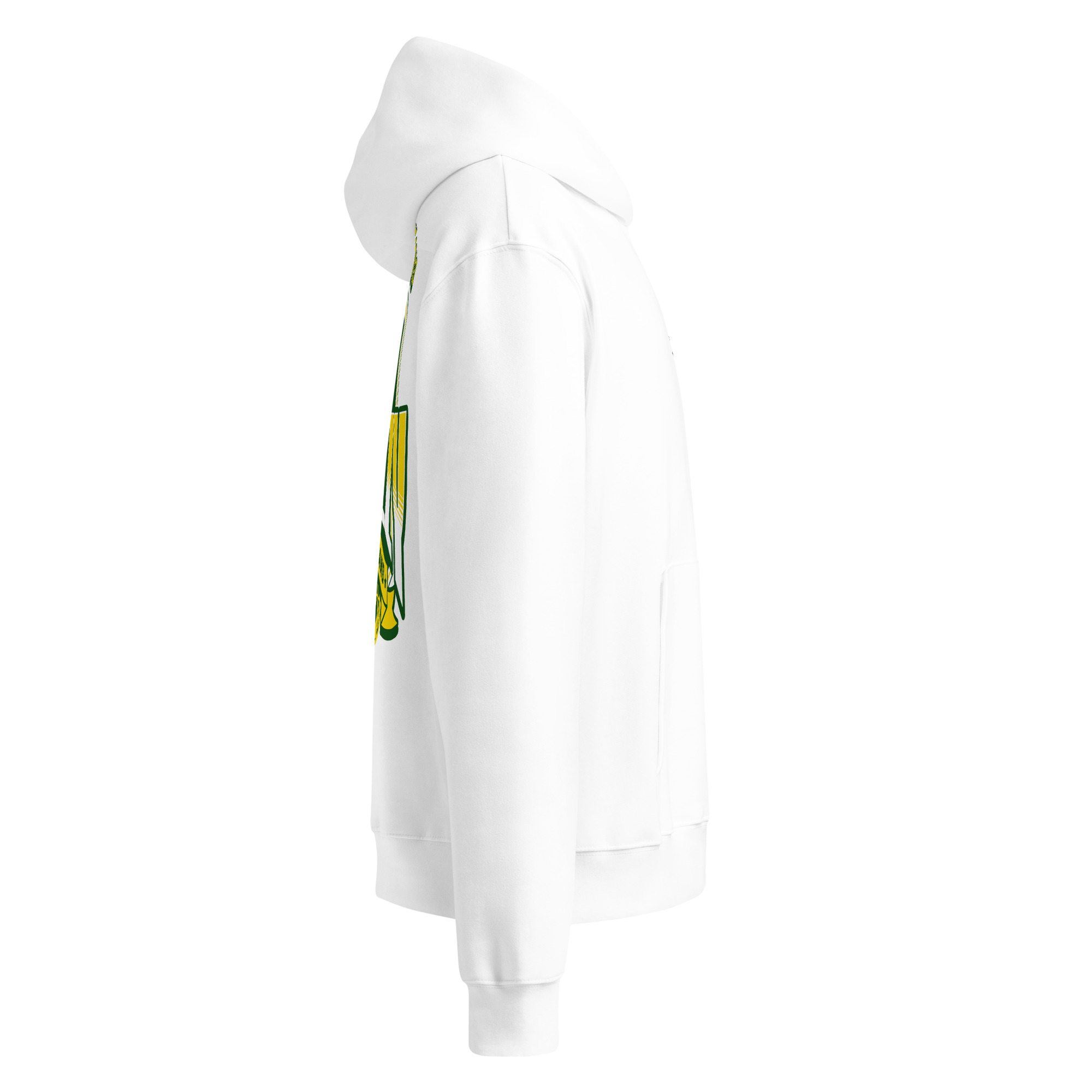• Farbe: Weißer Hoodie mit großem Print hinten und kleinem Print vorne