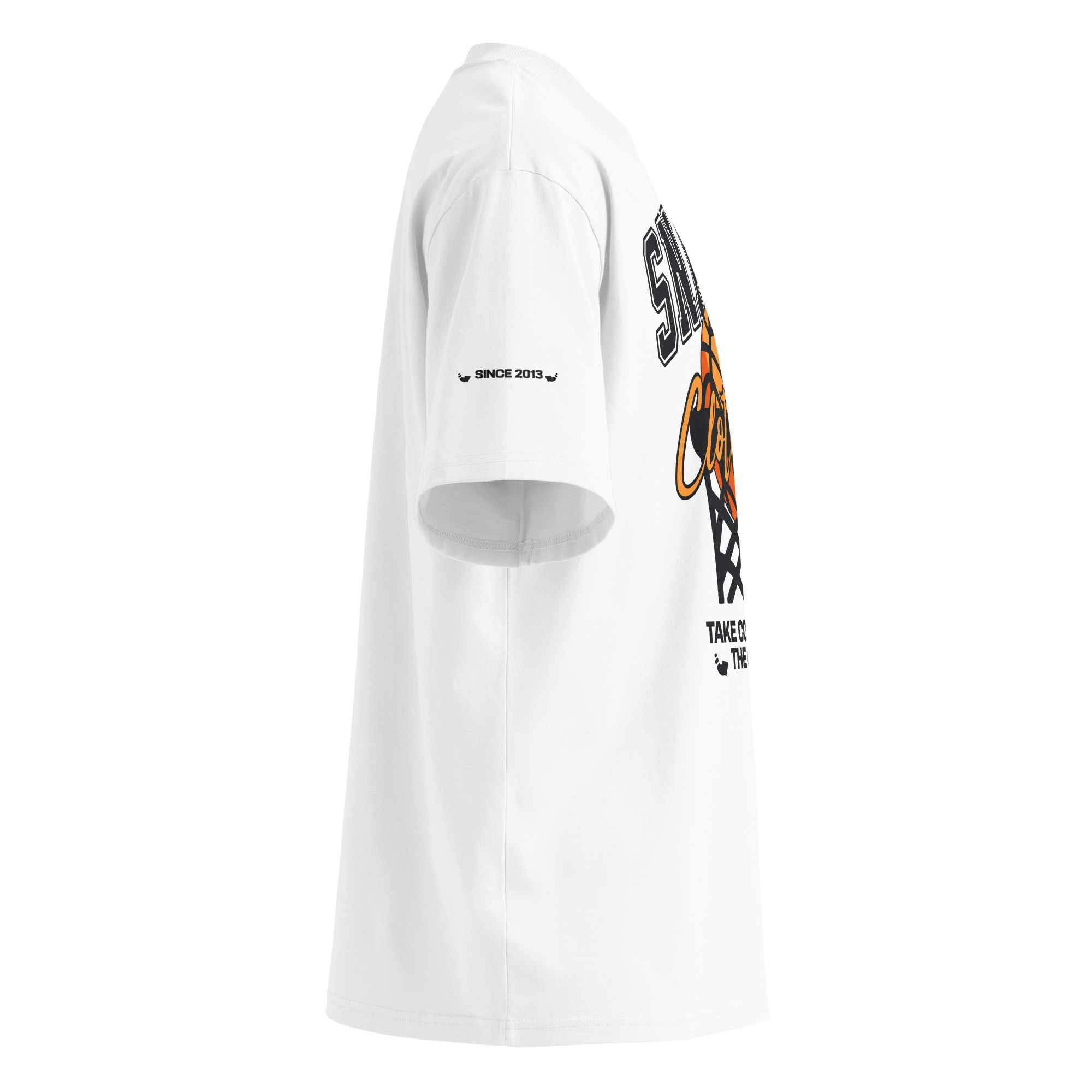 • Farbe: Weißes T-Shirt mit großem Print vorne und kleinem Print auf dem Ärmel
